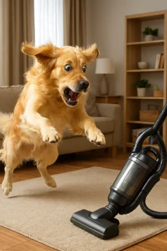 Vacuums are loud, unpredictable, and move in ways that can feel threatening to dogs—especially breeds like Golden Retrievers that are naturally alert and protective.